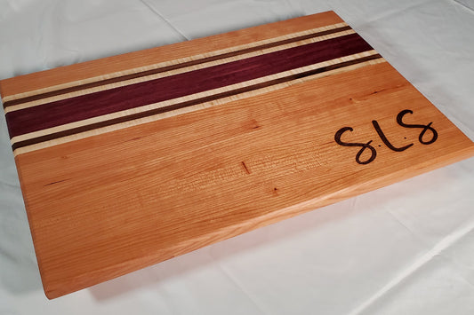 Handcrafted Cherry, Purple Heart, Walnut & Curly Maple Cutting Board – Perfect for Grilling and Gifting